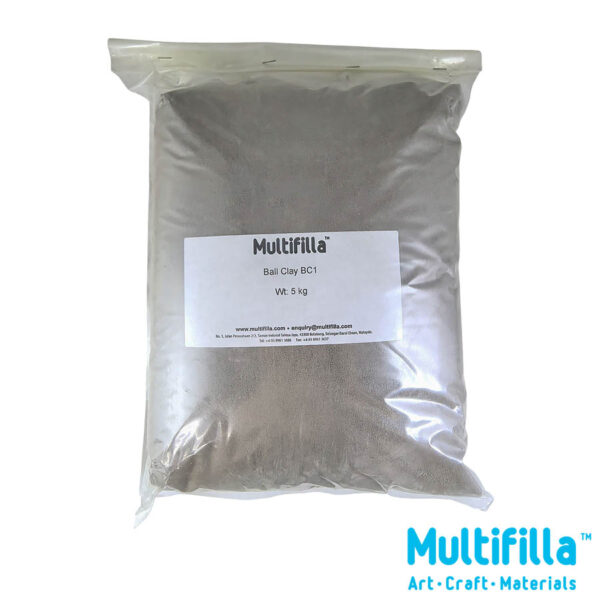 BC1 Ball clay is a very fine grained sedimentary clay powder commonly used to improve clay formulation plasticity. Clay plasticity is an essential in hand building sculptures, clay throwing and even in slip casting. This improves workability due to its fine smooth texture and binding properties. It also a suspending agent in glaze formulation that prevents particles sedimentation and hardening as hardpan. Hardpan can be reconstituted into glaze slurry with addition of measured doses of glaze flocculant. BC1 on its own as a slurry will have a high shrinkage and drying cracks. It cannot be used as a clay body unless with silica, feldspar, kaolin and even grog. Even then clay shrinkages from greenware to fired state can vary from 10 to 15 % due to it fineness. Overall drying time is slower with addition of BC1 ball clay that reduces warping and shrinkage cracks.