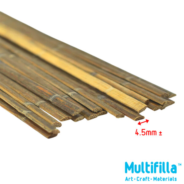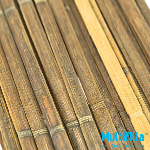 These mini half round organic bamboo peel with skin is an ideal material for scale models in creating rustic houses, bridges, fences and diorama projects. Glue well with modelling glue, hot melt, superglue as well with carpenter glue. Soaking in water and steaming will soften bamboo strips to form shapes such as miniature bamboo steamers, bowls and platters. Crafting fan with bamboo ribs and silk or tissue paper. Varnish with H20 covercoat varnish or shellac. Use Tung oil to waterproof that enhances its natural beauty. Bamboo in oil finish and by nature will withstand water and moisture. Makes ideal miniature decorative items like bridges, benches, railings in terranium glass houses and even underwater aquarium or water world dioramas. Easy to cut with craft knife, shear and plane with mini planner.