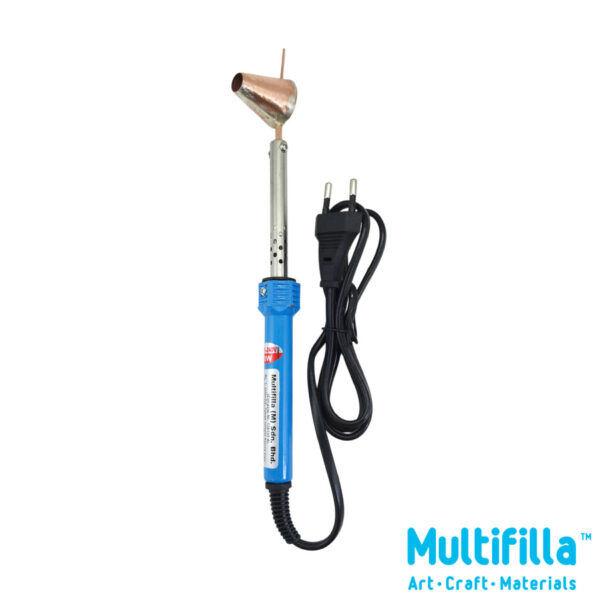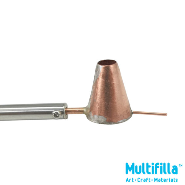 Fill with batik wax scrapings or from a wax pot of molten batik wax using a spoon. Do not dip hot canting directly into a wax pot. If blockages occur, switch power off and clear nozzle with canting cleaner. Good practice to sieve hot wax of impurities before use.