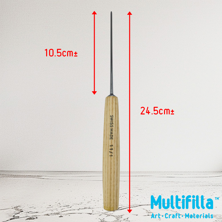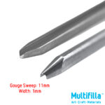 Swiss origin Pfeil carving gouge Sweep 11/1mm. Handy size for small detail carving with long reach. Gouge width is 1mm. Cutting edge honed and polished both surfaces to exceptional sharpness. Superb sharpness in carving wood, wax, carving rubber, industrial styling clay and resins. Mirror polished gouge enable smooth cutting glide. Wood handle is oiled ash wood. Manufactured from special alloyed hard tool steel, forged and ground on precision machines, electrical heat treated and hardened uniformly to 59-61 HRC. Final is hand sharpened and ready to use. Not to be misused and keep away from children.
