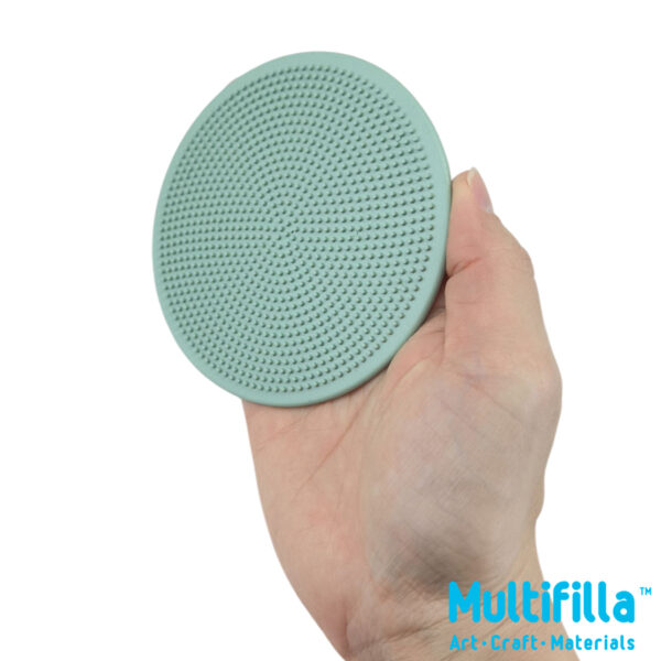 Practical item in transfer printing over inked linoleum carvings. Its numerous protruding dots closely spaced enable clear printing of minute carved details when rubbed over the rice paper. Its handle permit comfortable grip and firm transfer of hand pressure in any direction over the wooden block, etched metal or linoleum plate. Alternative use of the plastic baren creates nice little dots imprints to clay body. Application of silicon release agent to plastic baren prevent clay adhesion and clean release. It also assist smoother rubbing over rice paper in printing.