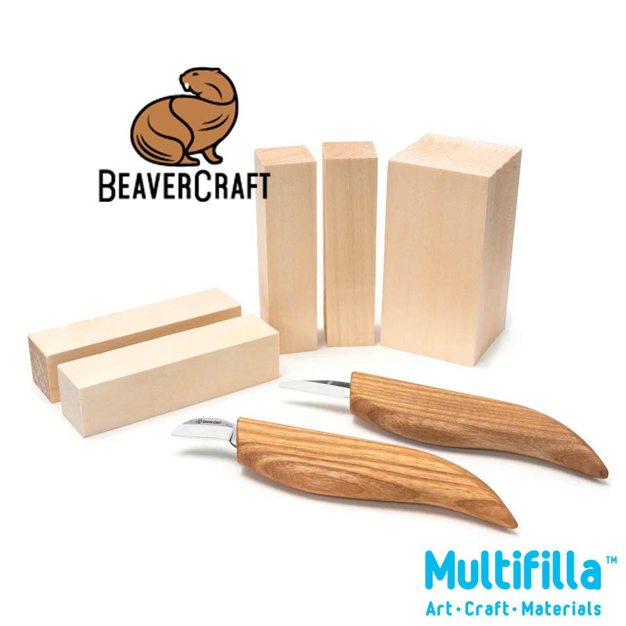 By purchasing the BeaverCraft S16 Starter Whittling Knives Kit, every wood carving enthusiast receives top-class and reliable wood carving tools. The content of the set will please any carver, regardless of experience. There are five excellent quality whittling basswood blocks for your wood carving experiments and two professional knives (a whittling knife for cutting small figures and caricatures and a chip carving knife for delicate wood cutting techniques).