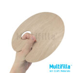 Compact handy wood pallet for oil painting lightweight too. Small size ideal for detailing. In acrylic painting, cling wrap with food Saran plastic and discard to renew painting pallet. Need not clean. Studio use as decorative wall hanging with acrylic painting or simply a dirty pallet with used painting brush.