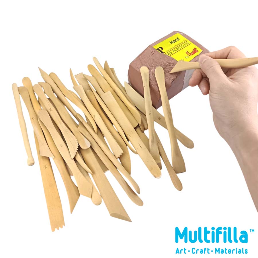 Ideal wooden tools set 38pcs in 2 different profiles per tool for class and studio. Hard and polished wood for clay sculpting, decorations and mold making. A nice mix of tools profile for studio and classroom.